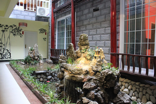 古樸的客房?jī)?nèi),超大陽(yáng)臺(tái)全景落地窗,是您欣賞沱江風(fēng)光帶首選客棧,兩座百年四合院內(nèi)小橋流水,假山錦鯉,一百三十平米休閑花園別具情調(diào)。紅酒加咖啡的大堂吧、彩色精致的情調(diào)房、古典高雅的臨江觀景房以及大型公共觀景平臺(tái),龍閣的點(diǎn)點(diǎn)滴滴都透著出古城的神韻和幽靜,走進(jìn)龍閣客棧,給您一個(gè)完美的鳳凰古城沱江全景!