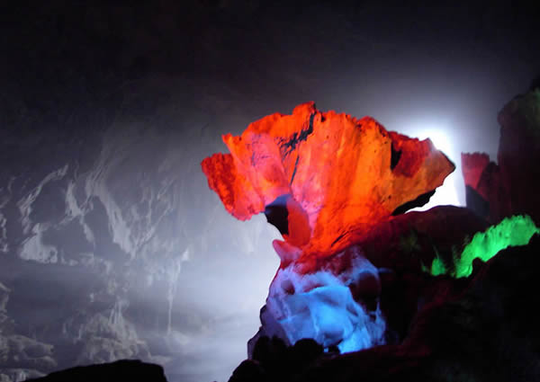 似萬樹千花凡塵不染,千姿百態(tài),栩栩如生,溶洞景觀巖石無論大小,處處雄風大氣,陽剛十足,赤壁倒懸,險峻無比,造型奇絕,特色鮮明。洞中有洞,處處晶瑩剔透,一脈柔情,石獅、石鶴、石樹、石花、石鐘、石幔、石田,有的象“水底龍宮”;有的似“瑤池果樹”、“鯤鵬展翅”、“巨蟒捕食”,有的則如“觀音坐蓮”、“玉女垂幃”,可謂是奇景芬芳,別具一格。巖溶精品,要數(shù)湛稱世界奇寶的“水下晶錐”,1988年3月中美聯(lián)合溶巖考察隊一行12人來萬華巖進行為期一周的考察后,贈錦旗一面,贊美萬華巖是“世界上最美麗的洞穴之一,她可以與世界上所有漂亮的溶洞媲美。”具有頗高的巖溶科研、旅游觀光、洞穴探險價值。但蓋世絕景是2000年10月中國科學院地理研究所宋教授一行來萬華考察,發(fā)現(xiàn)的“石蛋生筍”,目前世界上屬首次發(fā)現(xiàn),其價值是不可估量的。