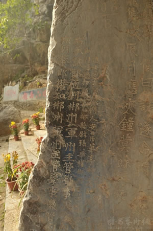 萬華巖摩崖石刻群 位于郴州市北湖區(qū)萬華巖鎮(zhèn)萬華巖國家級風景名勝區(qū)內(nèi)。萬華巖洞內(nèi)留下了大量的宋代、清代石刻。其中立于清咸豐十年(1860)三月的《坦山萬華巖敘》碑,高1.5米,寬1.0米,厚0.3米,碑文800字,楷書,字跡清晰。記載了太平軍攻入郴州和退出郴州的時間、地點及當年太平軍犯郴及當?shù)匕傩盏挚沟那闆r。