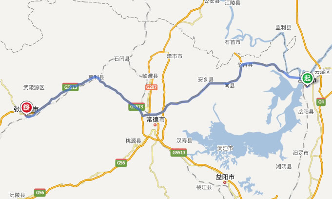 岳陽到張家界自駕車線路圖(路程最短):