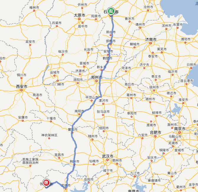 石家莊去張家界自駕車線路圖全程只有部分高速):
