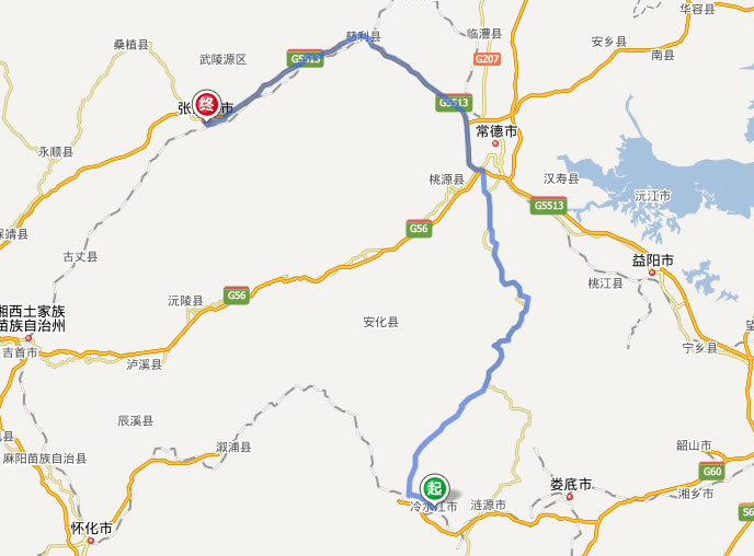 冷水江去張家界自駕車自助游線路圖(省道+高速):