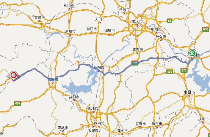 九江到張家界自駕車(chē)線路圖(路程最短):