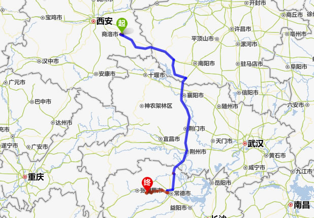 商洛去張家界自駕車(chē)自助游線(xiàn)路圖全程高速):