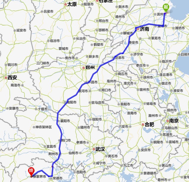 東營去張家界自駕車自助游線路圖全程高速):