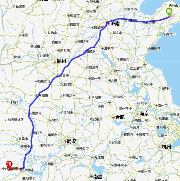 萊陽去張家界自駕車自助游線路圖全程高速):
