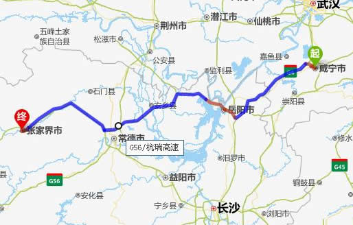 咸寧去張家界自駕車自助游線路圖全程高速):