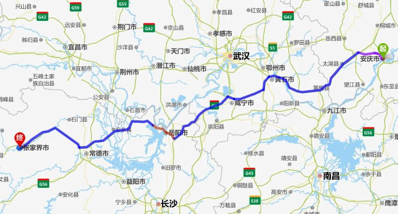 安慶去張家界自駕車自助游線路圖全程高速):