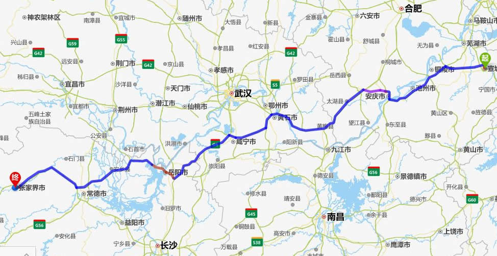 宣城去張家界自駕車(chē)自助游線路圖全程高速):