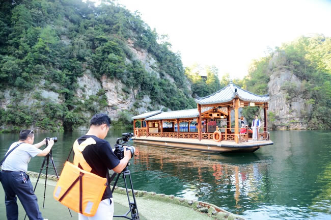 在武陵源期間,攝制組一行先后對武陵源天子山、袁家界、百龍?zhí)焯荨毞搴、黃龍洞、溪布老街等自然人文景區(qū)景點進行了立體拍攝,屆時武陵源神奇美麗的地質地貌風光、多彩多姿的民俗非遺文化,都將在專題片中得到很好的展現。