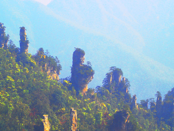 下 午:中餐后游玩世界自然遺產(chǎn)的核心---袁家界景區(qū)(包含電影《阿凡達》中“哈利路亞山”原型“乾坤柱”、天下第一橋、九天玄梯、乾坤柱、連心橋、中韓友誼亭、神龜問天、迷魂臺等景點) 。袁家界,是張家界森林公園山頂觀景最為奇特壯觀景區(qū)之一,與黃石寨遙遙相對卻勝過它…之后便乘坐大約20分鐘的環(huán)保車可到大觀臺住宿地休息,體力好者導(dǎo)游可帶去游玩未開發(fā)景區(qū)——老屋場風(fēng)景區(qū),觀原生態(tài)的空中田園及神兵聚會絕景。